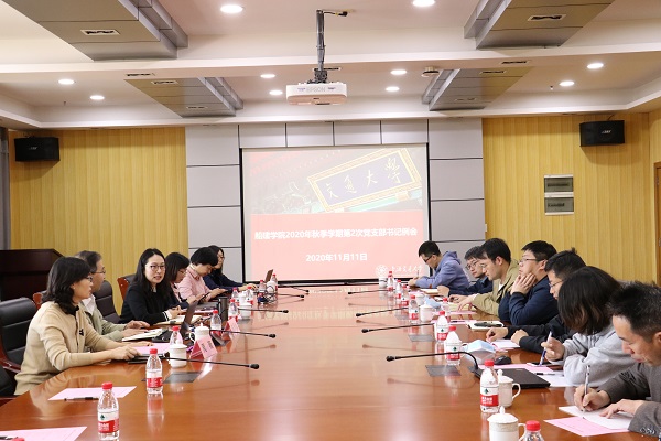 11月11日,船建学院2020年秋季学期第2次党支部书记例会召开,校党委教师工作部常务副部长、人力资源处副处长陈贤峰受邀出席会议,院党委书记周薇、副书记王喜芳、党政综合办主任朱惠红,各教工党支部书记、支委参加会议。会议由王喜芳主持。