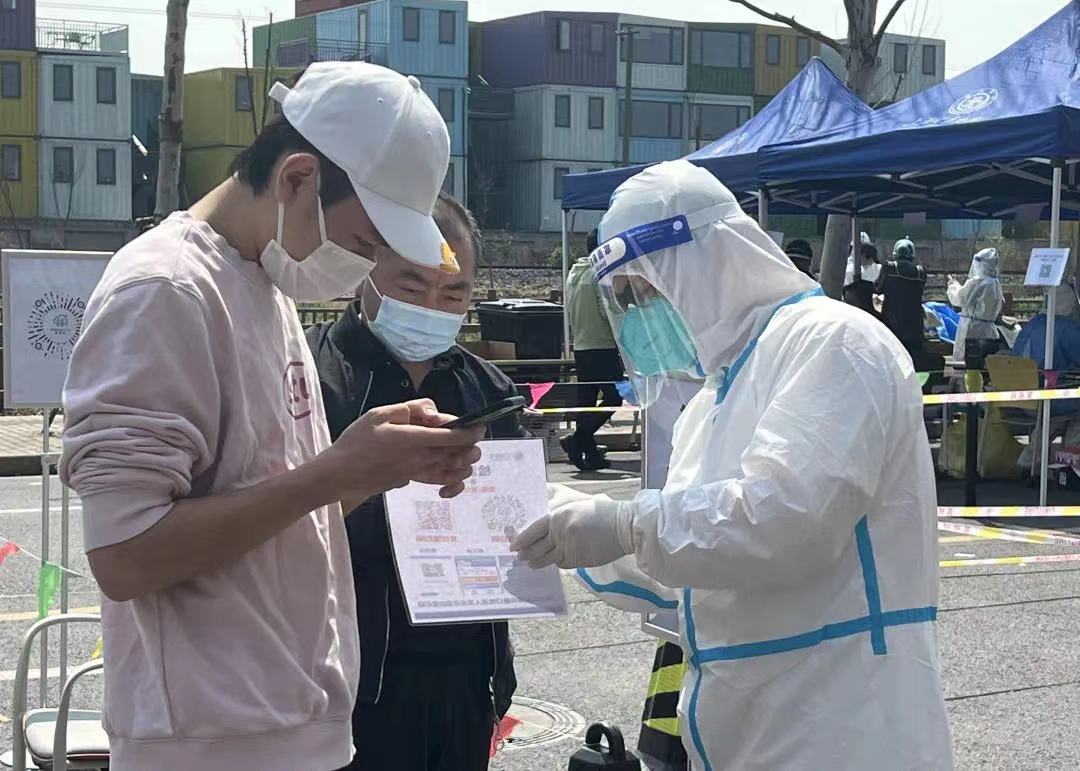 教工志愿者在核酸检测点服务