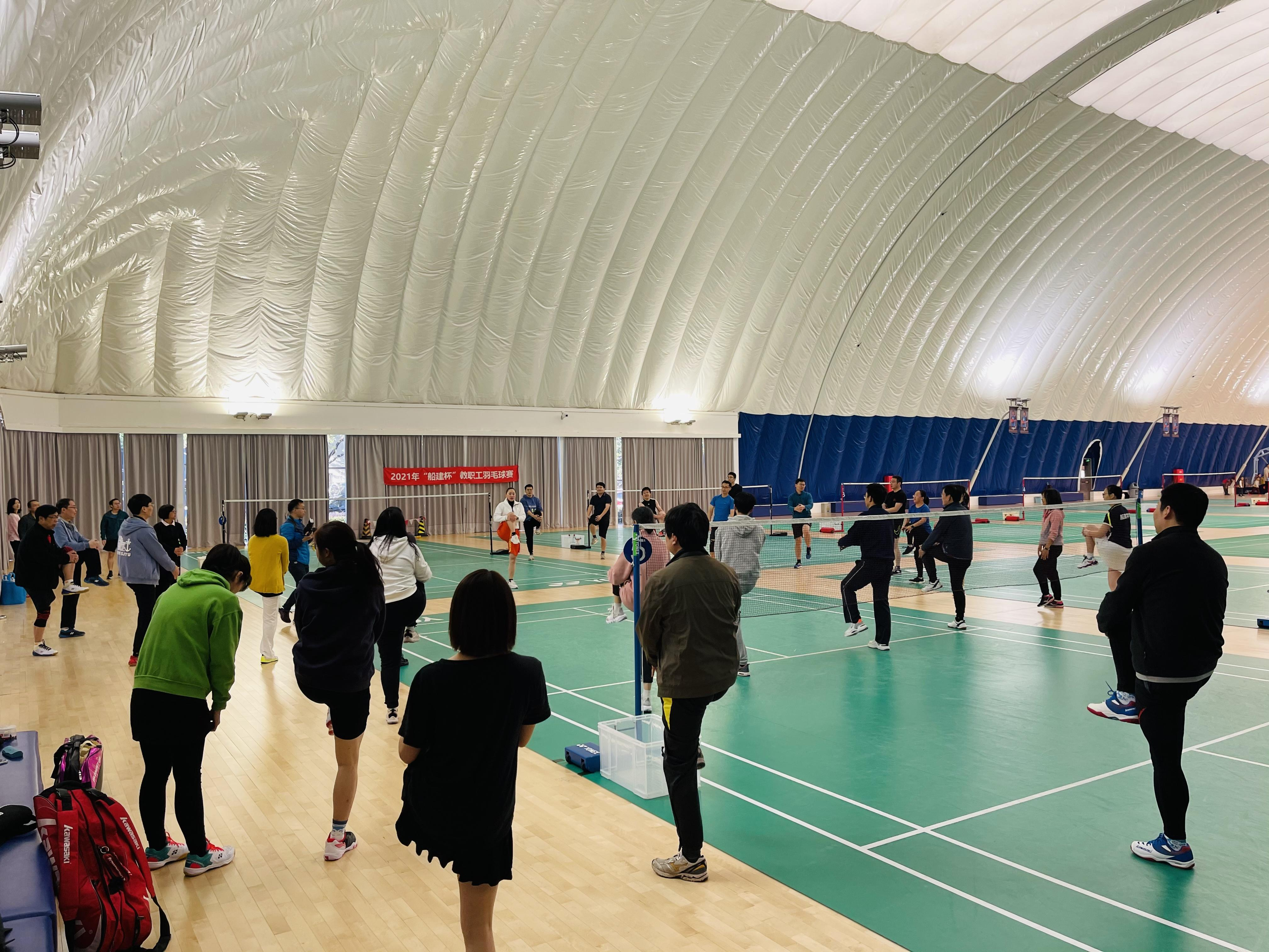 为促进学院体育活动的开展,提高教职工的身体素质,为国家海洋强国、交通强国战略实施中贡献世界一流大学和学科的力量,学院工会于12月5日上午在气膜馆体育中心举办好色tv 2021年“船建杯”教职工羽毛球赛。