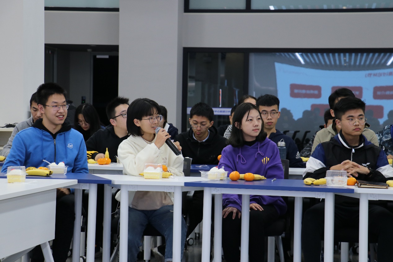 在交流环节中,2020级新生分享了入学以来在学校的见闻和感受,畅谈生活中的疑虑和学习中对专业分流、双学位的困惑。在场的老师对每位同学提出的问题一一耐心解答,并从学业规划、时间管理、体育锻炼、心理调节等多个角度给予新生鼓励和建议。交流环节氛围轻松愉快,充满了欢声笑语。
