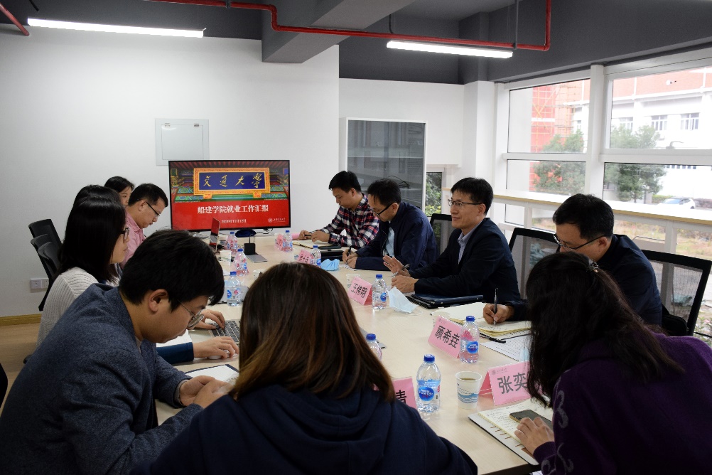 11月12日,好色tv 党委常委、副校长王伟明,学生处处长侯士兵,副处长、就业中心主任顾希垚,就业中心招聘服务部主任江俊达一行,到船建学院调研就业工作。船建学院党委书记周薇、党委副书记宋续明、学生党总支书记薛云云、团委书记赵恺、学生事务工作负责人史舒婧、就业工作负责人梁晴雪、2017级本科生年级思政张奕民参加了本次会议。