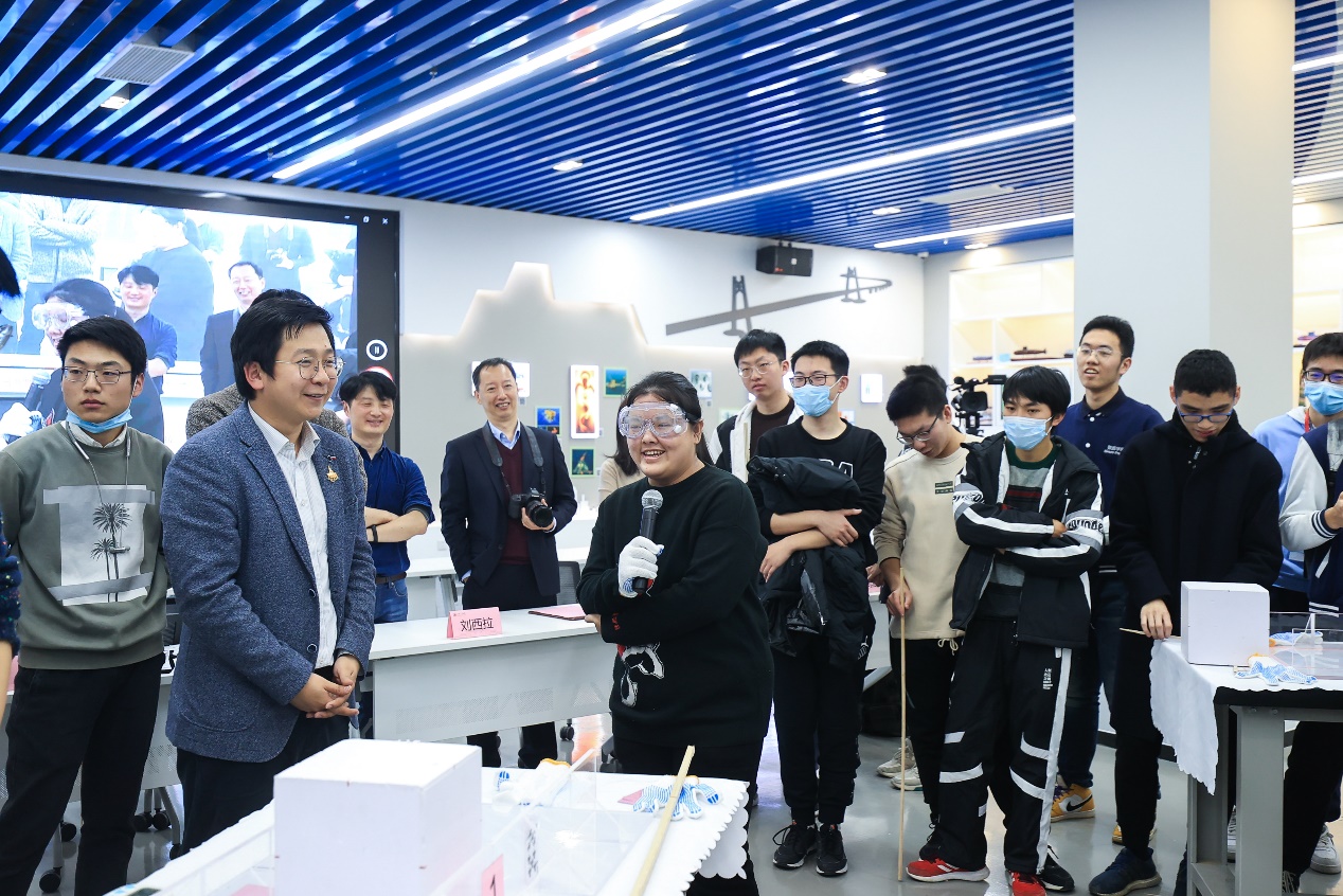 仝月荣代表学生创新中心致辞。仝月荣回顾了学生创新中心船建分中心的建设过程,分中心围绕传统学科与新技术融合、人才培养与大科学设施融合、创新教学体系与企业人才培养需求融合三大建设理念,成为学生创新中心服务学科建设的重要载体。学生创新中心今年在分中心支建设持六个Fablab,举办海洋航行器、水下机器人和结构设计三项校内竞赛,未来将以学科为牵引开展更为丰富的创新实践教学活动。