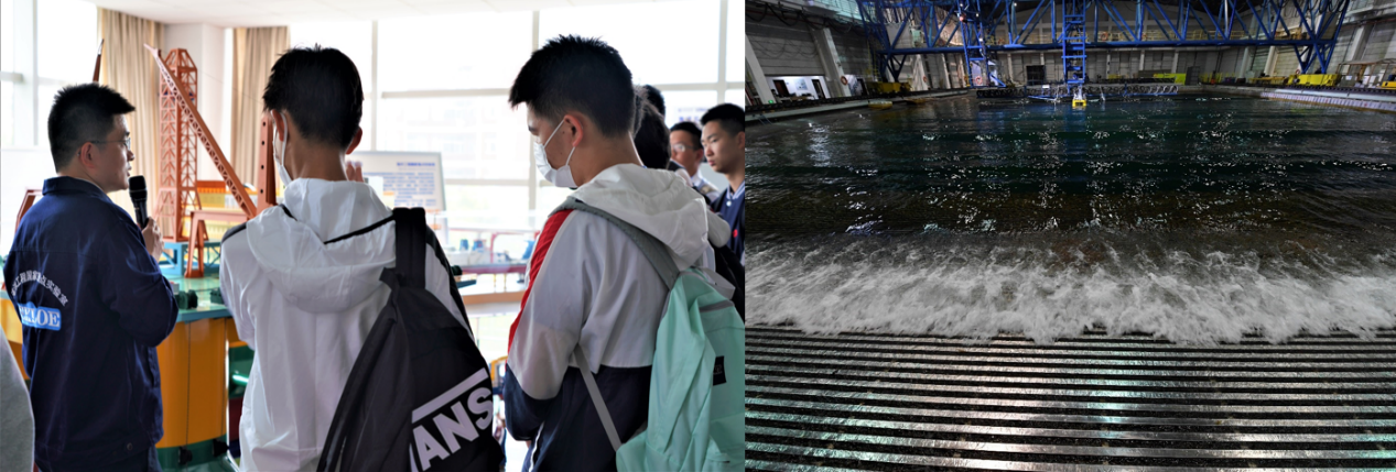 为了让中学生更直观了解实验室科研设施和科研成果,讲解老师带领同学们实地参观了海洋深水试验池、水下工程实验室和风洞循环水槽三个实验室。