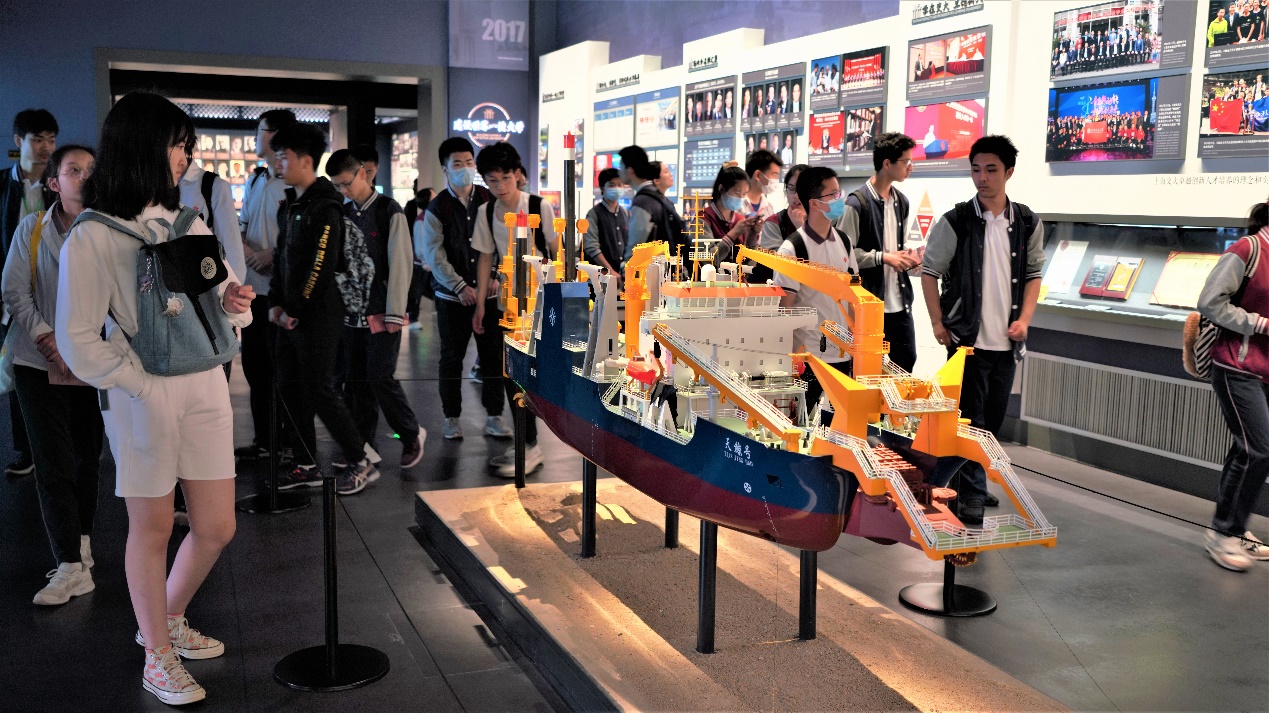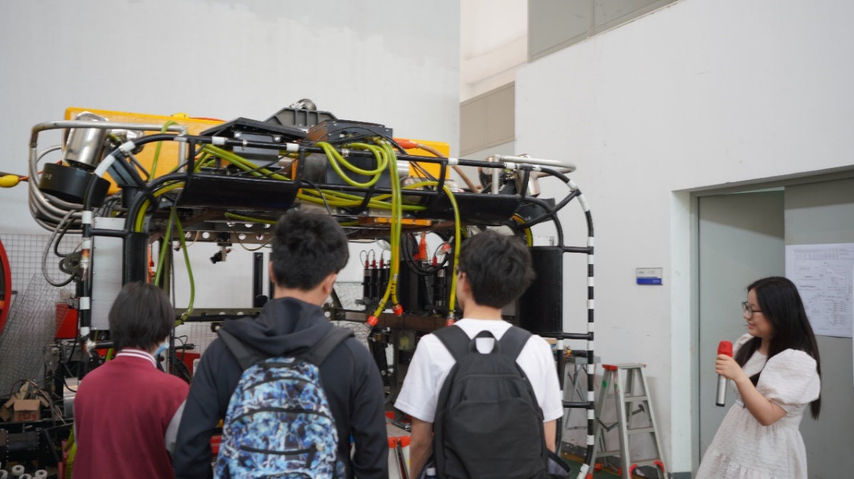 同学们进入实验室目睹了深水试验池造波场景,零距离观看了981平台模型、豪华邮轮船模、“海龙Ⅲ”无人潜水器等“大国重器”。