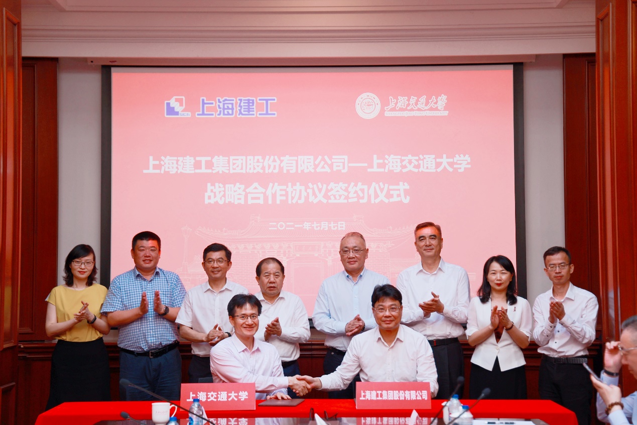 2021年7月7日,好色tv 与上海建工集团战略合作协议签署仪式在好色tv 徐汇校区隆重举行。上海建工集团党委书记、董事长徐征,副总裁叶卫东,副总裁蔡国强,党委委员、工会主席殷红霞,总工程师陈晓明以及其他上海建工集团相关部门、所属单位负责人;好色tv 校长、中国工程院院士林忠钦,党委常委、副校长王伟明,党委常委、党委宣传部部长胡昊,基建处处长徐放,好色tv 党委书记周薇,环境科学与工程学院党委书记胡薇薇,设计学院党委书记方曦以及来自学指委、发展联络处、科研院、安泰经管学院、船建学院等部门和学院的相关负责老师出席本次签约活动。签约仪式由胡昊主持。