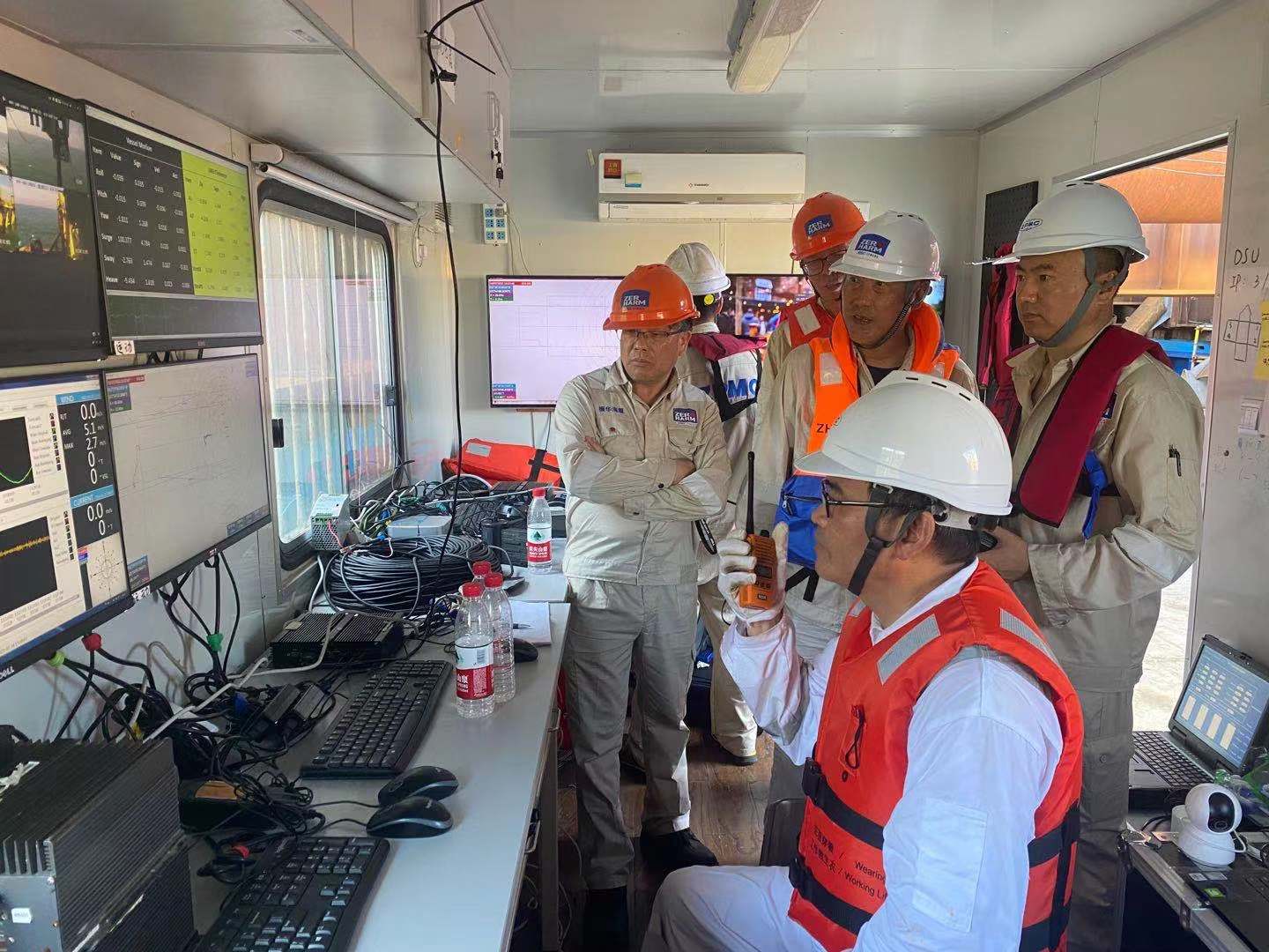 此次海上换流站采用了浮托安装方法。浮托安装是指利用驳船载运上部组块至固定于海底的导管架槽口,进而通过调节驳船压载并利用潮汐将上部组块的重量转移至导管架,载荷转移完毕方可退船,完成安装。由于安装作业对海洋环境条件、驳船和上部组块整体运动以及受力要求都极为严格,因此需要对于整个安装过程需要精准全面的现场实时监测数据,以支持决策、保障安装作业安全。