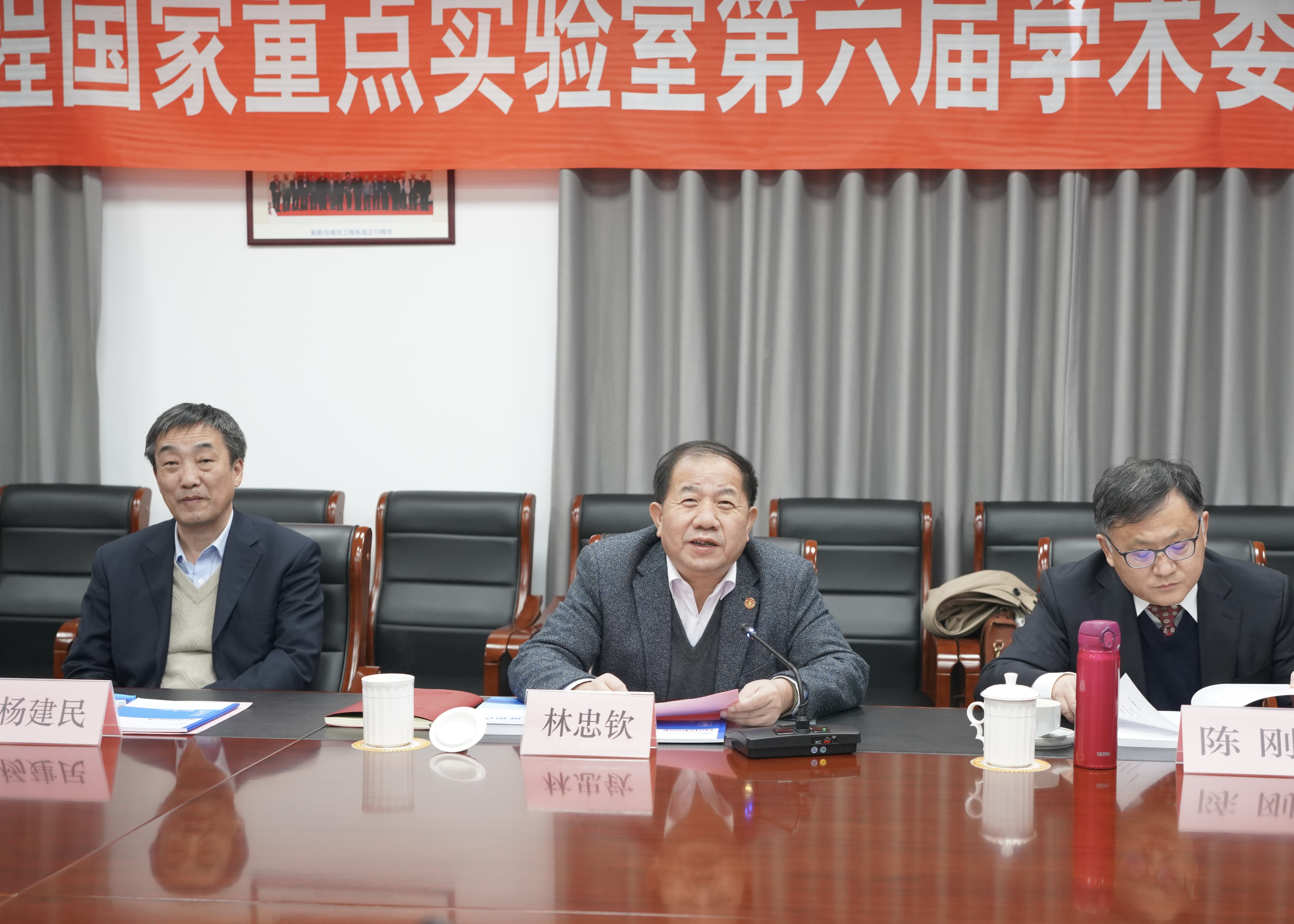 林忠钦校长代表上海交大致辞,对各位委员给予实验室的长期关注和支持表示感谢,同时希望学术委员会各位专家继续支持实验室,协力提升海洋科技自主创新能力,持续推进船海领域的产学研用合作,支持实验室抓住国家重点实验室重组的契机,在新的布局构架下,更紧密的对接国家战略,更好地服务国家和行业的需要。