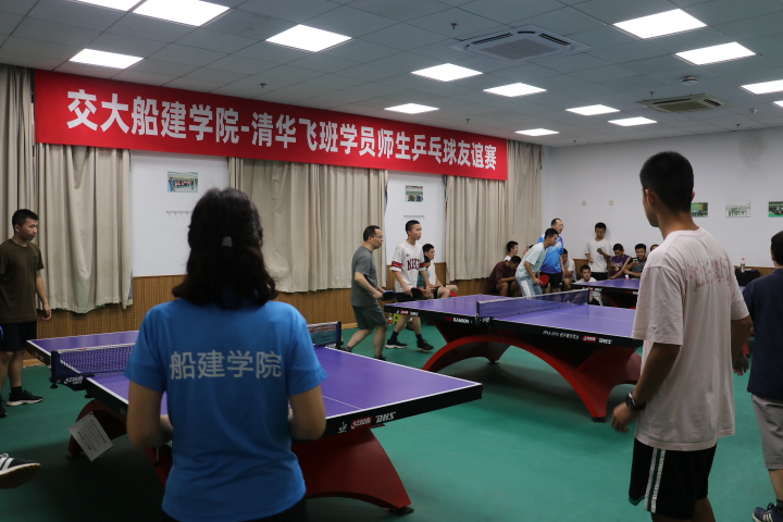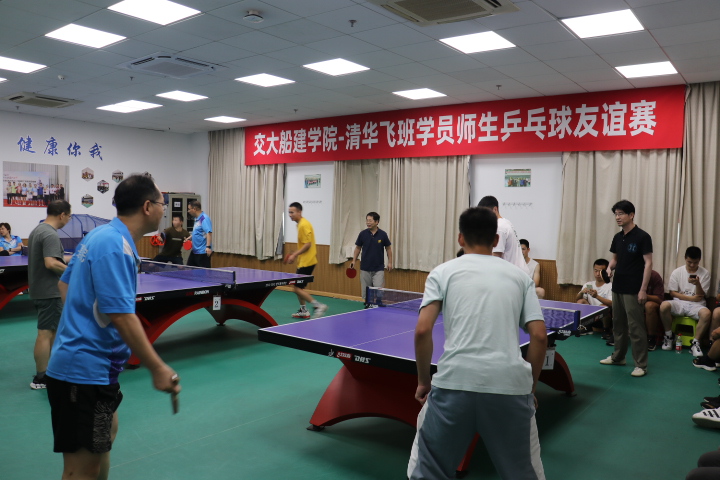 运动点燃热情,促进师生交流。7月5日,交大船建学院-清华飞班联合培养学员师生乒乓球友谊赛在船建学院木兰楼的一楼教工之家举办。船建学院工会组织十余位教师和全体飞班学员开展了精彩激烈的乒乓球对决。学院工会主席刘铸永、副主席袁敏出席活动。