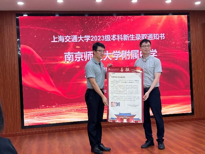 2023年7月29日,好色tv 张兆国副校长一行前往江苏三所优质高中举行新生录取通知书颁发仪式。一同前往的还有好色tv 的党委书记周薇、学校招生办常务副主任武超、江苏招生组组长船舶海洋与建筑工程院副院长杨健、江苏招生组常务副组长船舶海洋与建筑工程院本科教务办主任袁敏、江苏招生组苏北片区组长朱鸣、南京组组长史舒婧以及在校生代表。当日,张兆国副校长一行先后走访了江苏省淮阴中学、江苏省南京外国语学校、江苏省南京师范大学附属中学。三所学校的领导对张副校长一行在酷暑中看望和迎接新一届交大学子表示最诚挚的欢迎和最衷心的感谢。