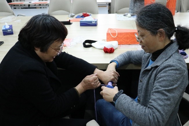 为弘扬中华优秀传统文化,传播健康生活理念,11月15日,船建学院工会开展“巧做养生锤 敲响幸福曲”女工手工制作活动。本次活动由学院工会女工委员曹嘉怡主持。