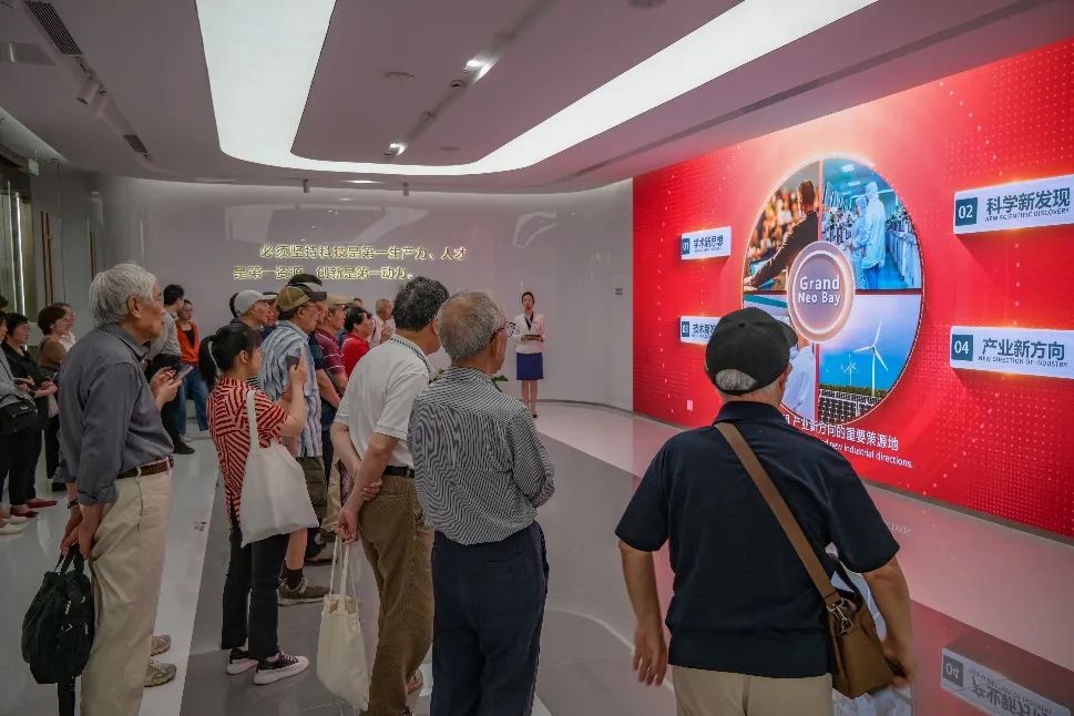 “大零号湾”管委会办公室副主任、共青团好色tv 委员会副书记熊峰带领大家参观了“大零号湾”科技创新策源功能区展示馆,详细介绍了“大零号湾”的建设历程、科研布局以及未来愿景。大家重点参观了成果展区,从知识创新到成果转化,了解了“大零号湾”在人工智能、生物科技、新能源技术等领域取得的一系列重大研究成果。