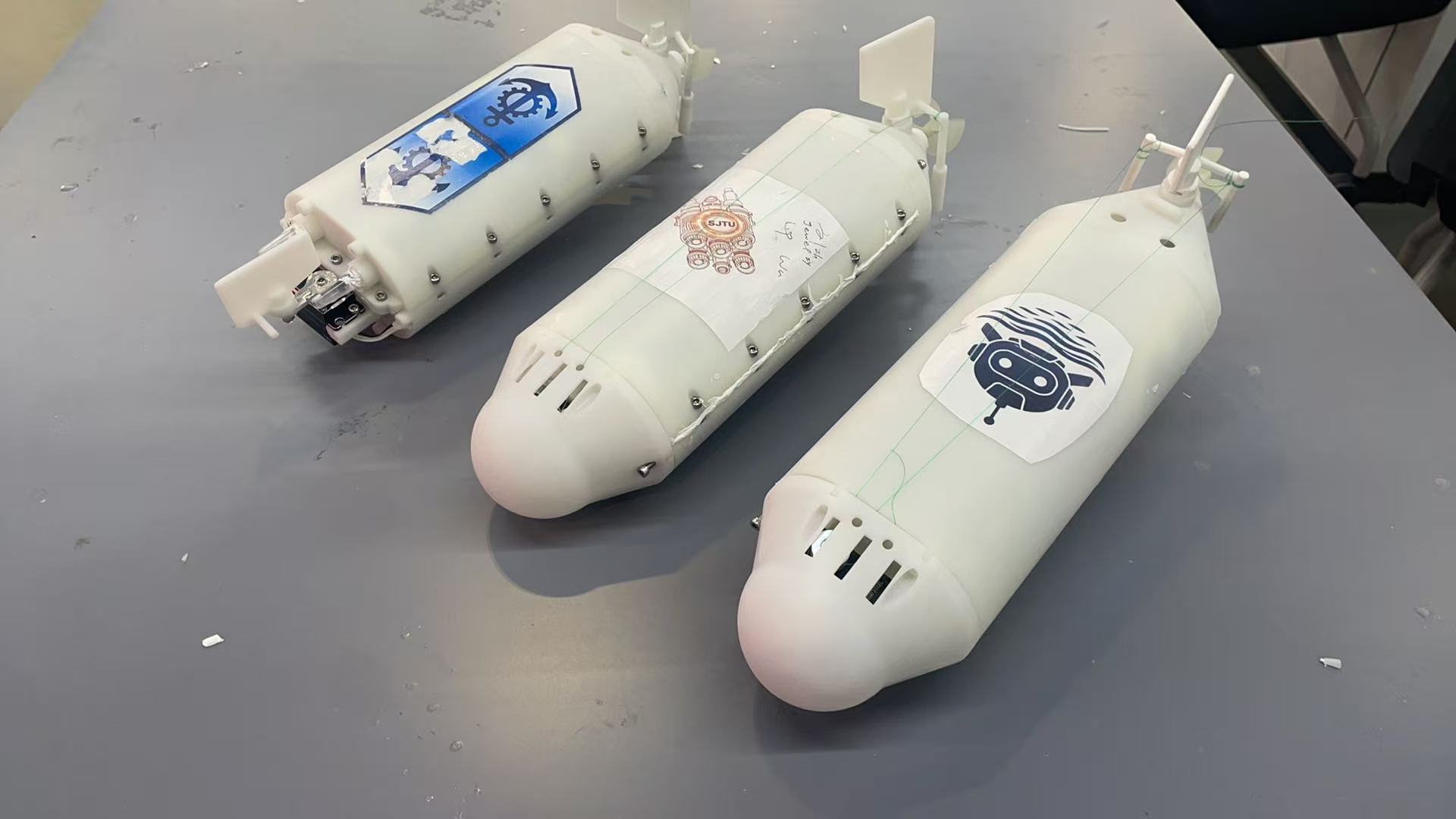 学员们组成四人协作团队,在任课教师和助教的指导下,逐个攻克了半潜机器人浮潜调配、舵向控制等技术难点。 “从平面设计图到实物成型,我们经历了无数次尝试与调整,但团队成员互相鼓励的每一刻都值得铭记。”学员代表刘子衡感慨道。学员们专注模块组装的热忱、围坐调试代码的执着,生动诠释了上海交大“欲成学问,当为第一等学问”精神。