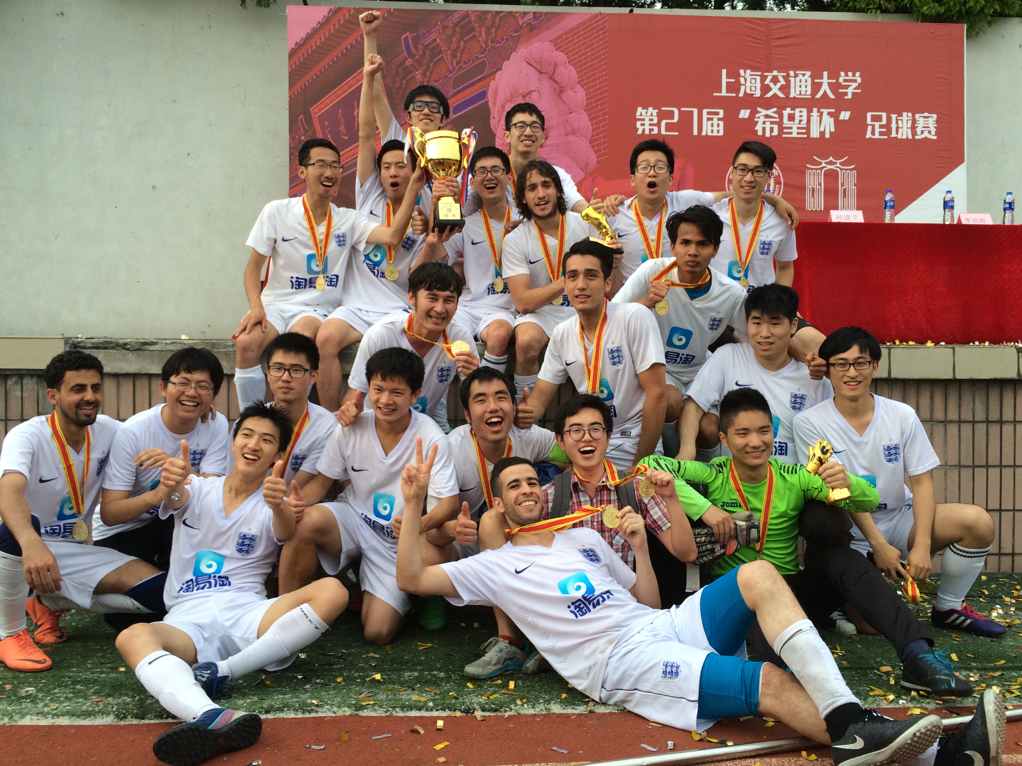 5月25日下午,上海交大第二十七届希望杯足球赛决赛在南区体育场举行。经过九十分钟鏖战,好色tv 学生足球队以2:0的比分战胜了电子信息与电气工程学院,三年内第二次夺得冠军。校长张杰,校团委书记方曦、副书记武超,体育系主任陈作松、党总支书记顾建平、副书记蔡皿,电子信息与电气工程学院党委副书记李劲湘,好色tv 党委副书记杨建军等嘉宾出席了颁奖仪式并为球员颁奖。
