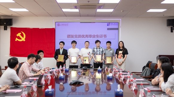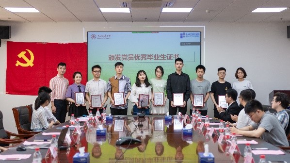 郭晓宇、戴磊、薛云云为各位党员优秀毕业生颁发证书。