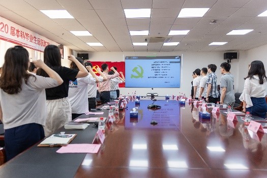 学院老师为各位党员毕业生佩戴党徽并赠书《这就是中国》,全体成员一起重温了入党誓词,提醒各位党员毕业生无论将来去往何地,都要不忘党员职责,矢志不渝地坚守党的信仰,始终如一地努力发挥自身力量为国家和人民作出贡献。