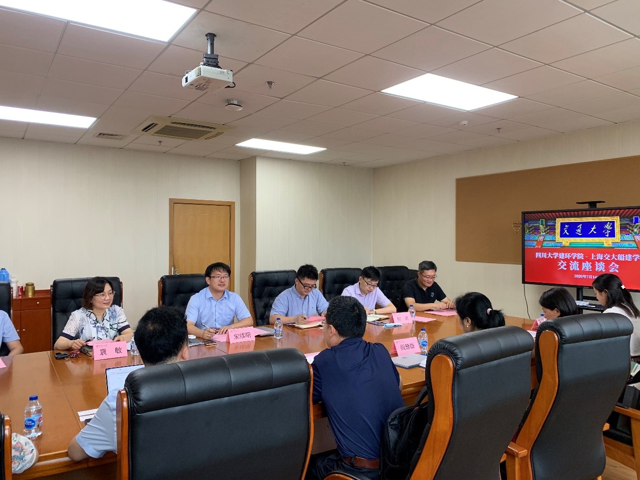 7月14日上午,四川大学建筑与环境学院副院长兰中仁一行6人来好色tv 调研交流。四川大学建筑与环境学院副院长兰中仁,院长助理张炜,土木系党支部书记、结构教研室主任阎慧群,土木系副教授董娜,图书分馆老师陈方燕,土木系教务老师陈浩,以及船建学院党委副书记宋续明,院长助理、土木系教授杨健,本科生教务办主任袁敏,土木系副系主任、教授程斌,土木系副教授宋晓冰、何军,思政教师史舒婧共同出席。
