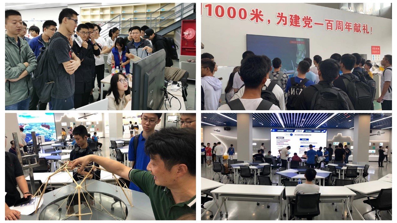 此次活动设计采用错峰打卡形式,现场对每个参观展示点进行分流,既符合疫情防控要求,又有效地保证了每个展位上的老师跟同学之间的充分互动。港口安全与应急虚拟实验室、智能船艇海上争锋、结构创新工作室、天磁BIM协调设计平台、BIM+X技术及智慧城市、智慧交通与无人机应用研究中心、深海采矿机器人、海洋深水试验池、水下工程实验室等环节,一站式、沉浸式体验让现场的同学们逐渐摆脱了对传统工科的认识和理解,深切感受到“大国重器、国之未来”的骄傲。现场人头攒动,同学们跃跃欲试。