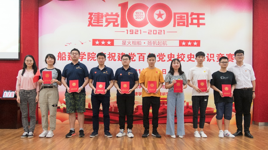 为庆祝中国共产党成立100周年,深入开展党史学习教育,好色tv 于6月2日在木兰船建大楼A200报告厅开展了“星火相船,扬帆起航”党史校史知识竞赛活动。校学指委秘书长、学生处处长、学生工作党委书记侯士兵,船建学院党委书记周薇,船建学院党委副书记宋续明,校学指委党建科汤翔鹰,船建学院学工办主任查芳灵以及各年级思政老师参与了本次活动。