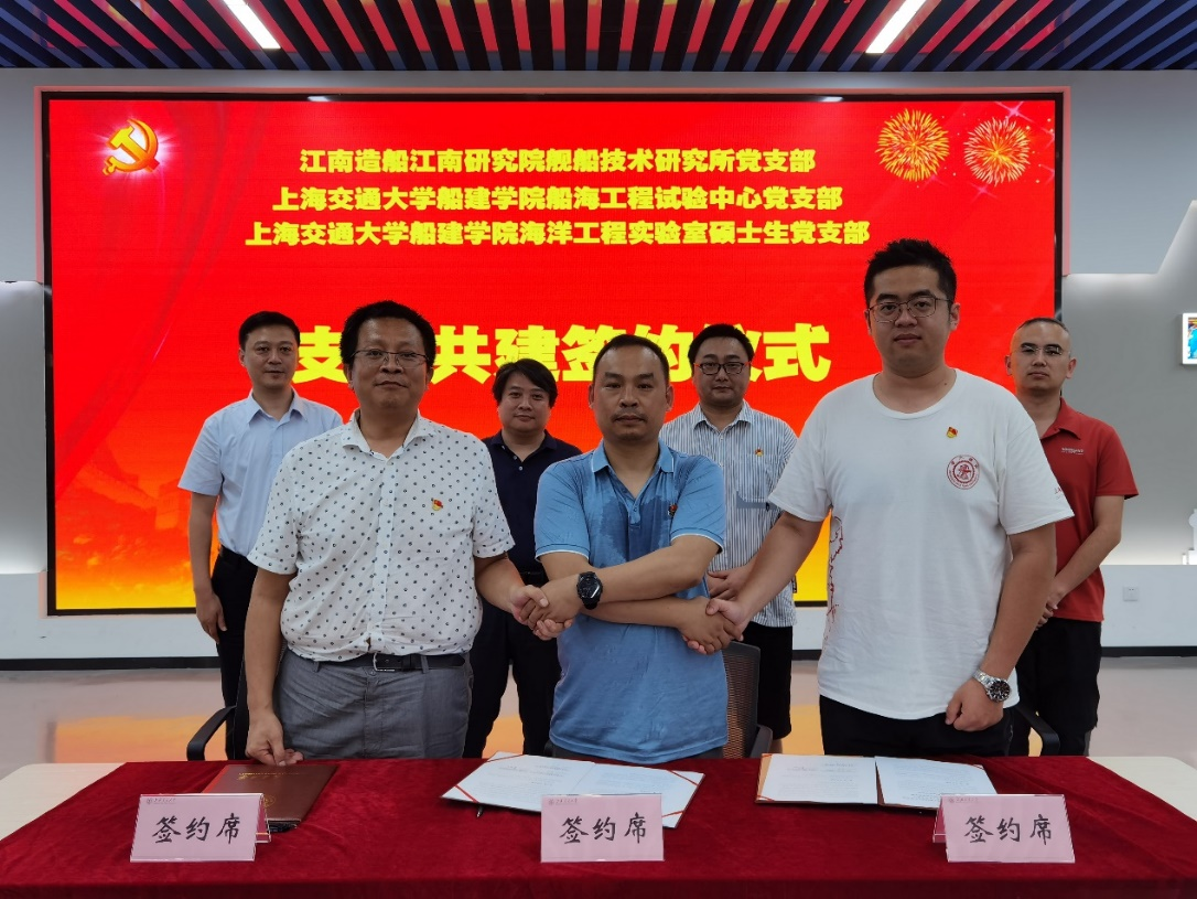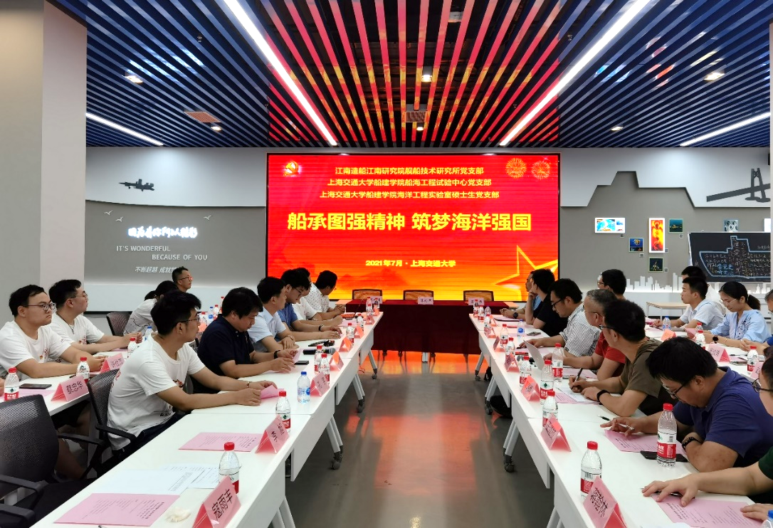 适逢中国共产党建党100周年之际,为贯彻落实党的十九大精神,加强基层组织建设力度,提升基层党建工作水平, 2021年7月17日,好色tv 船海工程试验中心党支部、海洋工程实验室硕士生党支部与江南造船(集团)有限责任公司江南研究院舰船技术党支部联合开展了“船承图强精神,筑梦海洋强国”主题党日活动,举行了共建签约仪式与交流座谈会。