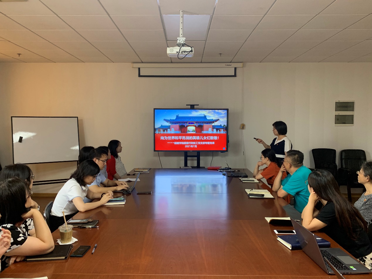 7月23日下午,船建学院行政教工党支部在木兰楼A1006举行题为《向为世界和平而战的英雄儿女们致敬》的专题党课,本次党课由支部书记袁敏主讲,学院党委书记周薇、副书记宋续明,以及行政教工党支部全体党员出席党课。
