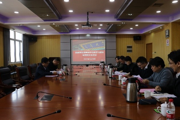 2022年1月19日上午,船建学院领导班子党史学习教育专题民主生活会在木兰楼A1002召开。上海交大党委常委、副校长奚立峰,上海交大纪委办公室副主任胡勇军出席会议,学院领导班子中的全体党员同志参加会议。会议由院党委书记周薇主持。