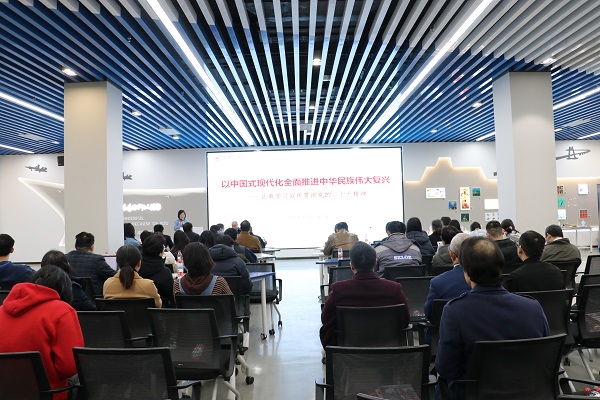 为进一步深入学习党的二十大精神,推动党的二十大精神走深走实,3月20日下午,船建学院党委邀请上海交大马克思主义学院王强教授做题为“以中国式现代化全面推进中华民族伟大复兴-深入学习宣传贯彻党的二十大精神”的主题讲座。学院党委书记周薇、教工支部书记、部分教工党员共100余人参加学习。活动由学院行政教工支部书记袁敏主持。