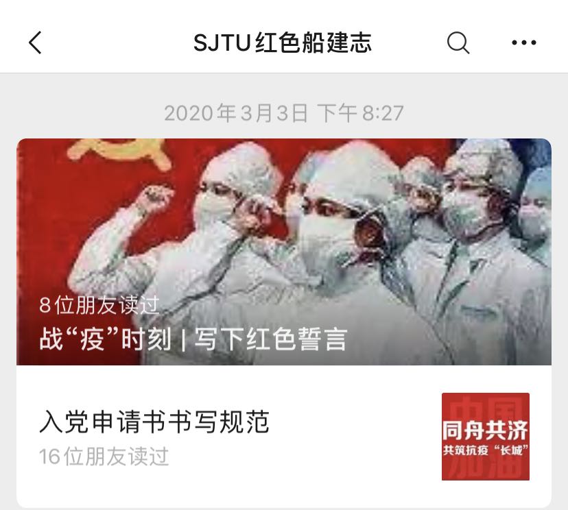 船建学院多名党员、入党积极分子、入党申请人主动报名参加社区防疫志愿者,为战“疫”工作贡献自己的青春力量。在线上主题党日活动上,参与志愿服务的同学们分享了他们的抗疫故事,并带动更多的船建学子通过志愿服务、捐款捐物等方式为打赢这场疫情防控阻击战作出自己的贡献。船建学院党建公众号“SJTU红色船建志”和学生工作公众号“船建人”积极挖掘典型,及时报道,扩大影响,发挥朋辈教育实效。