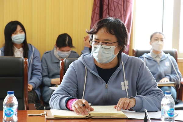 首先,学院党政综合办公室主任朱惠红代表学院疫情防控工作领导小组具体介绍了前一阶段疫情防控的各项工作成果,并对具体负责日报、采购等工作任务的老师表示了感谢。行政组室全体老师在接到任务后,纷纷克服困难,毫无怨言,积极主动地投入疫情防控工作中,全力保障学院各项工作正常开展。