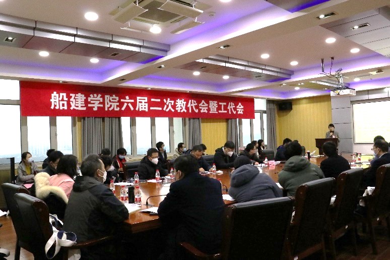 2023年2月9日下午,船建学院在木兰楼A1002会议室召开六届二次教代会暨工代会。校工会副主席肖国芳、船建学院领导班子成员、学院教代会代表、列席代表参加会议。会议由院工会副主席袁敏主持。