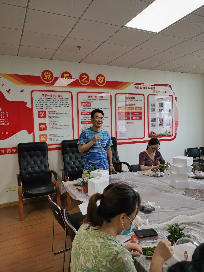 为舒缓学院女性教职工心理压力,点缀办公工位环境,7月24日, “相约木兰,细赏微观”桌面盆栽制作活动在木兰楼十楼举办。活动吸引六十余名女性教职工报名参与。院工会主席刘铸永出席本次活动,活动由妇女委员曹嘉怡主持。