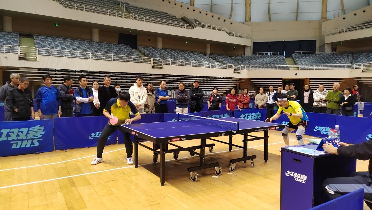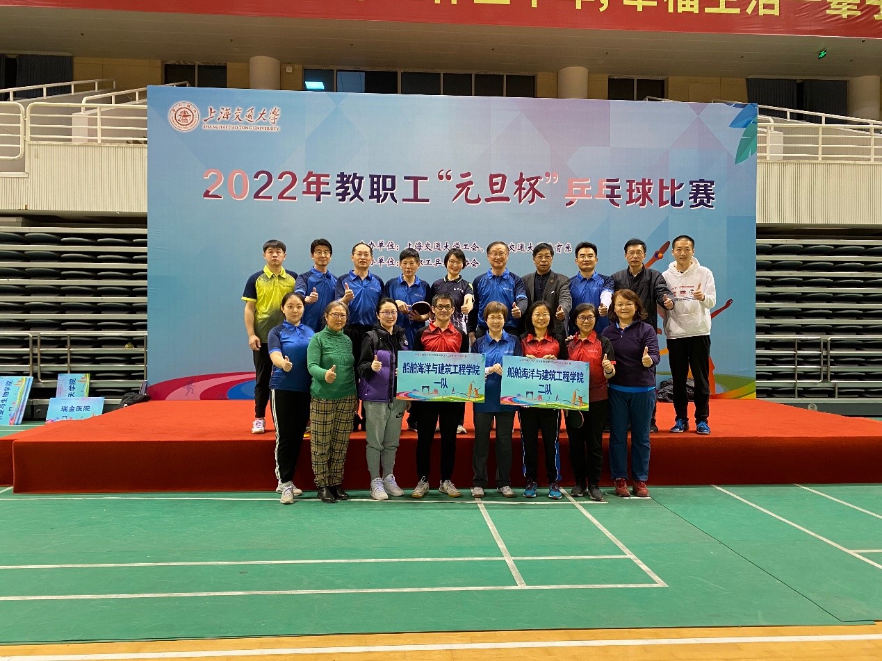 1月8日,好色tv 一年一度的“元旦杯”乒乓球团体赛在致远游泳馆和霍英东体育中心拉开序幕,船建学院选派20余名教职工共两支代表队参加比赛。比赛分为甲乙2个组别,船建一队征战乙组晋级赛,船建二队征战甲组巅峰对决。船建学院党委书记周薇、海装院党委书记蒋如宏、船建党委副书记王喜芳、船建工会主席刘铸永带队出征。