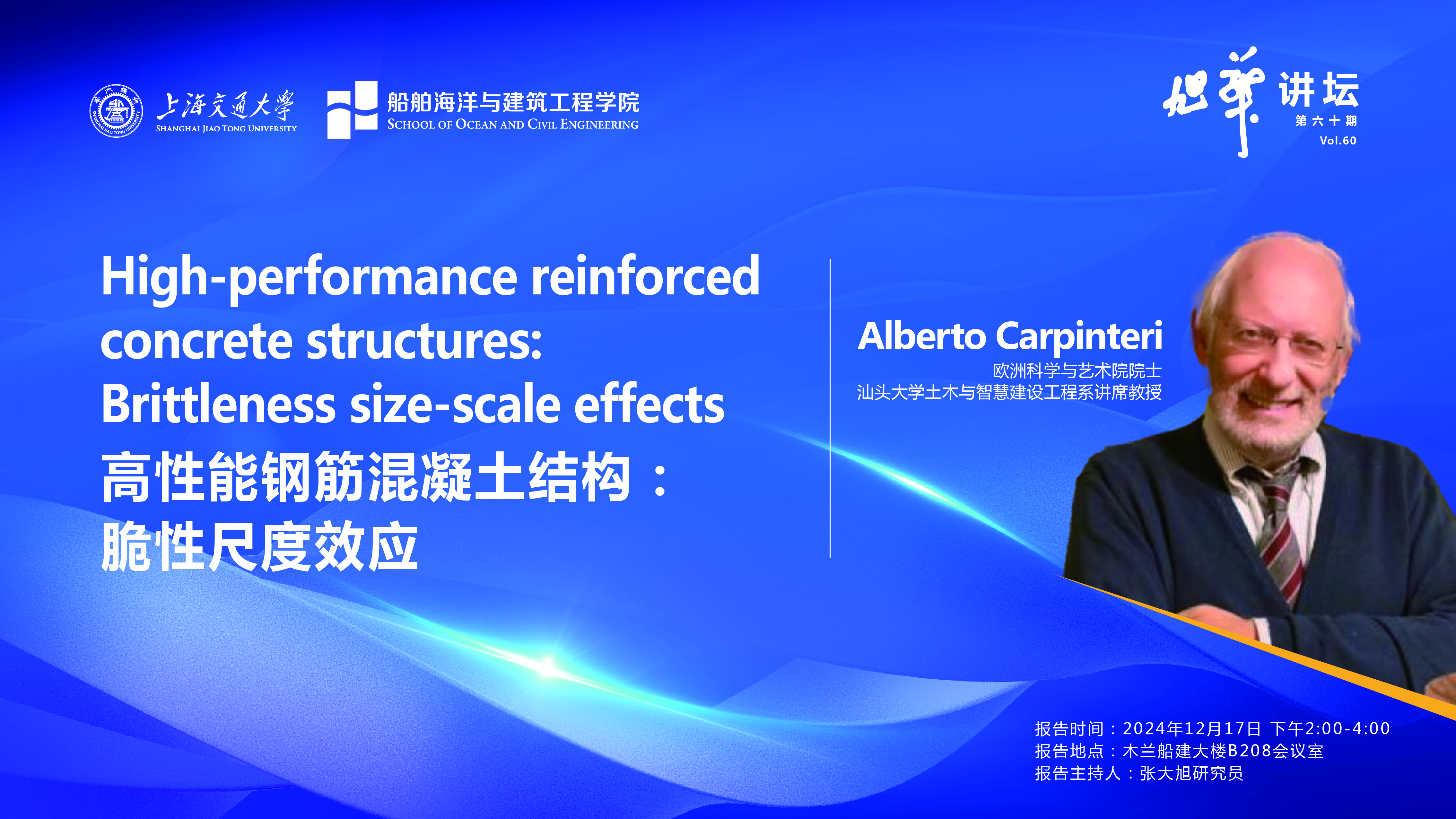 Alberto Carpinteri教授是欧洲科学院工程部主任、国家级人才、讲席教授,欧洲科学与艺术院院士。于1976年获得意大利博洛尼亚大学核工程博士学位,1981年获得数学博士学位。曾任意大利都灵理工大学结构工程系主任、结构工程研究生院创始院长。现为汕头大学土木与智慧建设工程系讲席教授。