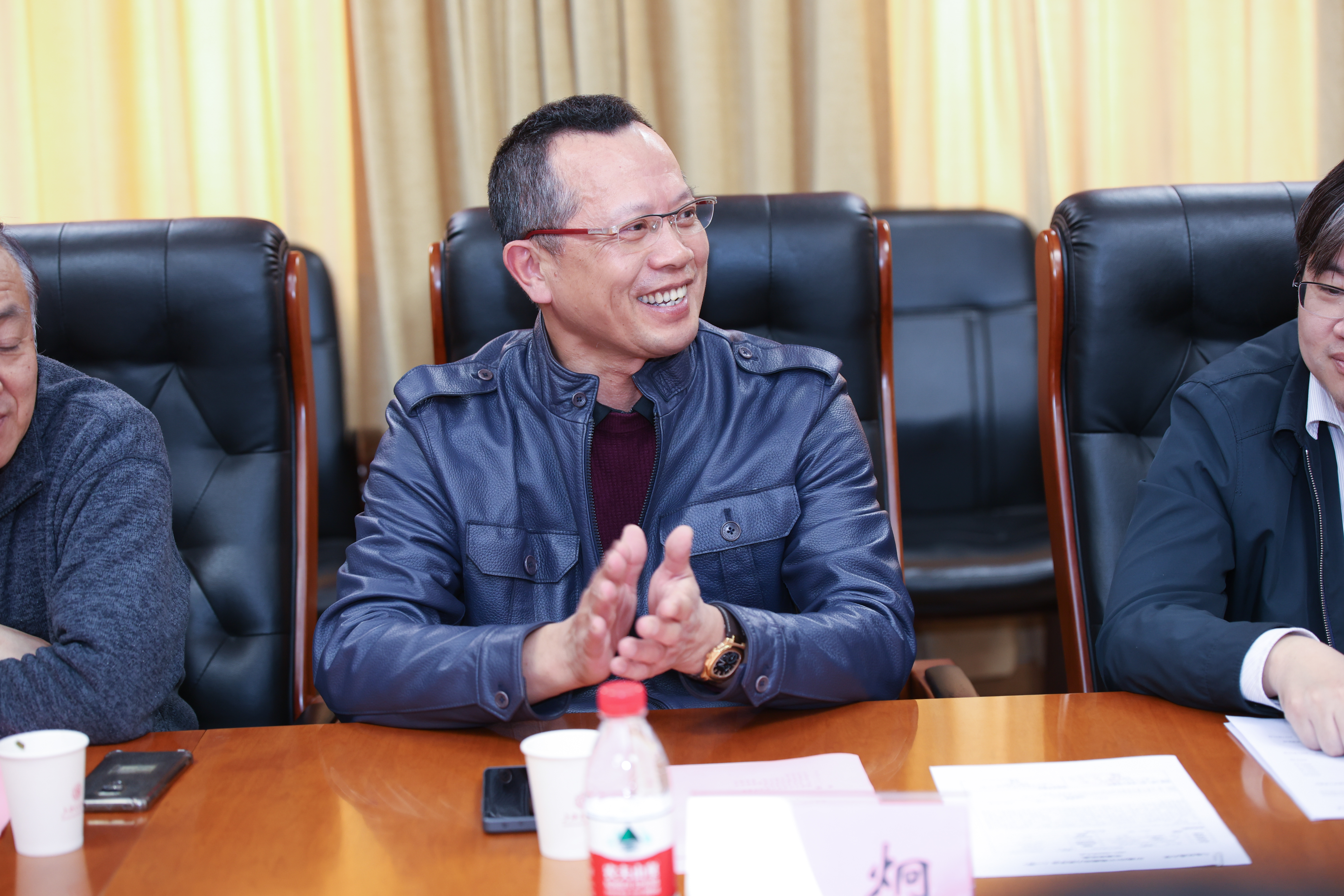 高晓敏学长和周薇书记的到来将座谈会的气氛推向了高潮。高晓敏学长向同学们介绍了中国船舶集团近年来在机电设备、动力系统等方面的发展和取得的成就,热情欢迎在座的各位同学在校学成之后,到中国船舶集团第七〇四研究所和第七一一研究所工作。周薇书记在细心了解了在座各位同学的情况后,进一步基于各位同学不断锻炼自己的能力,努力成为国家需要的综合型人才。