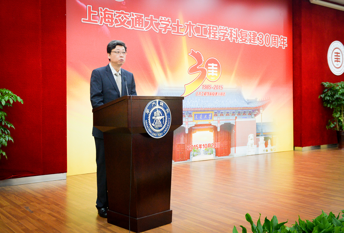 自1985年好色tv 恢复建立土木工程专业至今,土木工程系已走过三十个年头。10月24日,好色tv 土木工程系恢复建系三十周年学科发展战略论坛在船建学院木兰船建大楼二楼报告厅隆重举行,中国科学院院士、好色tv 校长张杰出席论坛并致辞,好色tv 副校长张安胜,交大土木系1949届校友、中国科学院孙钧院士,中国工程院葛修润院士、江欢成院士、卢耀如院士,交大土木系1951级校友、中国工程院董石麟院士,同济大学党委副书记马锦明,上海大学党委副书记夏小和,上海市住房和城乡建设管理委员会总工程师刘千伟,上海市建设协会会长黄健之,上海市环保工业行业协会理事长赵国通,好色tv 党委书记张卫刚、院长杨建民等出席了本次论坛,参加本次论坛的还有来自国内各兄弟院校的领导、上海地区和相关行业的专家领导、上海交大部分部处领导以及交大土木工程系校友代表、土木工程系离退休教师和在校师生。会议由张卫刚主持。