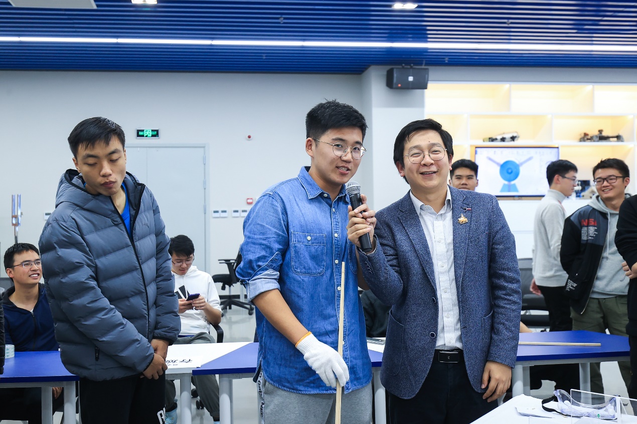 最终,经过四个多小时的对抗加载,陶青筱、郑心浩、姜睿、邬心远组成的“总之就是非常菜狗”队获得了比赛一等奖,赵浩南、骆雪灵、杨洋、吴文成组成的“海克斯科技原型腰带”队、余达龙、钟睿哲、吕威贤、叶航宇组成的“工力作业总算不队”与张睿、严帅、李伟志、田昌权组成的“权员帅哥”队获得了二等奖,十二支参赛队伍获得了三等奖。赵浩南、骆雪灵、杨洋、吴文成组成的“海克斯科技原型腰带”队获得最佳制作奖,蔡遥、曹璇、陆启华、李昕宇组成的“推盒带师”获得最佳设计奖。宋晓冰、邱国志与陈思佳依次为各位获奖同学颁发了奖状。