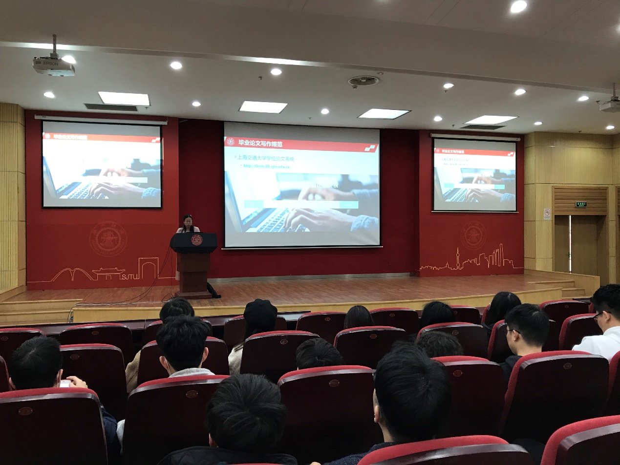 余婷婷详细讲解了写作的规范流程及要求,介绍文献调研方法的要点和技巧,推荐了知网、万方、超星百链等学术资源数据库,拓展了同学们获取学习资源的渠道。蔡文静介绍了交大版学术规范准则,列举事实案例,与同学们探讨剖析学术不端行为。她还介绍了文献管理软件NoteExpress,帮助同学提高写作效率。