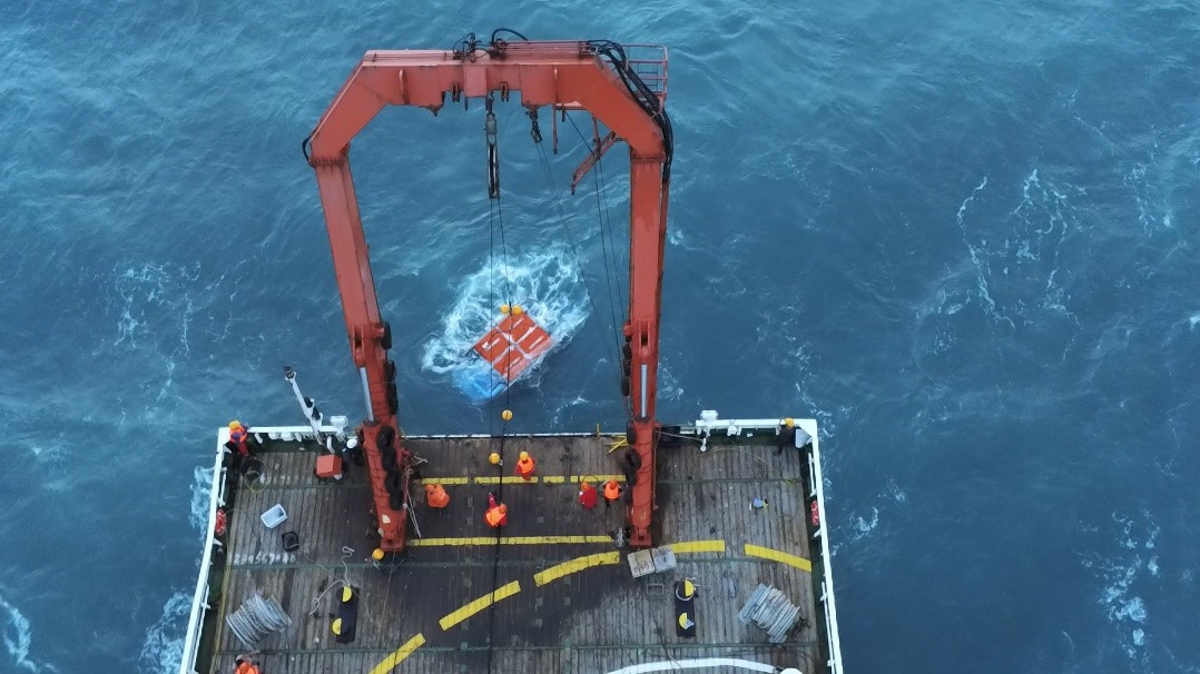针对重载作业采矿车海上安全布放和回收难题,项目组创新提出了采矿车水中运动姿态自动控制方法,实时控制推进器推力分配,在海上布放和回收过程中,自主、稳定保持艏向角方向。在此次海试的多次布放和回收过程中,采矿车在高速海流作用下,艏向角控制最大偏差小于1.4度,实现了采矿车在水中运动姿态的精准控制,保障采矿车可控、稳定地布放与回收。