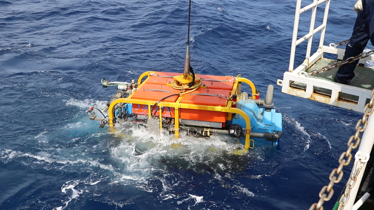 本次海试,“开拓一号”深海采矿车在不同海区分别布放至108米、246米、968米和1305米等多个水深的海底,成功完成重载装备海上布放回收、海底路径规划与自主行走、海底矿石采集与沉积物取样等试验,突破了深水大功率液压、高压电力能源供给、信号传输与智能控制、水下布放回收姿态自动控制、海底行走与矿石采集等深海重载作业装备研发的关键技术。