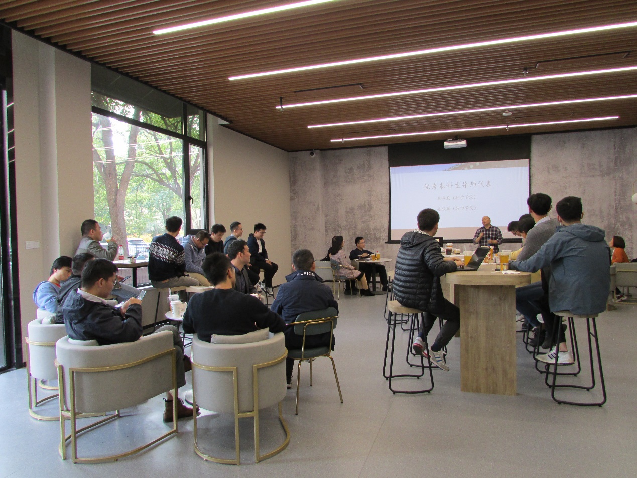 优秀本科生导师代表唐异磊、张跃辉介绍学生指导经验,他们在交流中表示,导师在指导学生时,要注重“针对性”。导师尽量去了解学生,采用合适的方法建立一个持续跟学生沟通交流的机制。在国外有些大学,本科生导师会选择熟悉甚至跟听大一课程,以此了解学生学业特征,帮助学生解决学业困难,跟学生一起制定合适的学业规划,并持续性的跟踪学生的学习发展。我们老师可以借鉴这些个性化的学生指导方法,从心去了解学生,接近学生,帮助学生,用情去关心学生,呵护学生,助力学生迅速成长。
