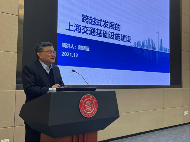 2021年12月3日,船建学院交通运输工程系和土木工程系联合举办秋季学期第二期“天地交通”学术讲座,由上海市交通委原副主任兼路政局局长、现任上海市科学技术协会常委、上海市公路学会理事长戴晓坚先生主讲,主题为“跨越式发展的上海交通基础设施建设”。戴晓坚通过对上海交通建设历史的回顾以及近年来上海交通建设发展的脉络梳理,解码上海交通发展秘诀。本次学术讲座吸引了近百名交大师生参与,讲座由交通运输工程系胡昊教授主持。