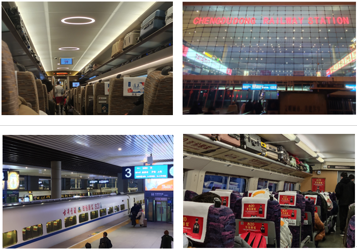 随着我国高铁的快速发展,越来越多的城市搭上了高铁这趟蕴含着科技与民族力量的现代化智慧快车。2022年春节前后,学生社会实践团利用开学返程的机会,在各自乘坐的高铁上进行了有关智慧高铁的体验和实践活动。实践团成员们来自五湖四海,实践活动也得以在从杭州、大连、成都、郑州、广州、宣城、盐城、安庆、常州等多个城市开往上海的高铁上开展,体验的列车车型包括早期投入运营的和谐号动车组,也有最新的复兴号智能动车组,感受中国速度的同时也看到高铁技术的不断进步。部分实践团同学参与了上海客运段与好色tv 等合作的科研项目“智能复兴号旅客行为视频分析装置研制”,深刻感受研究工作的必要性和研究成果的重要性。