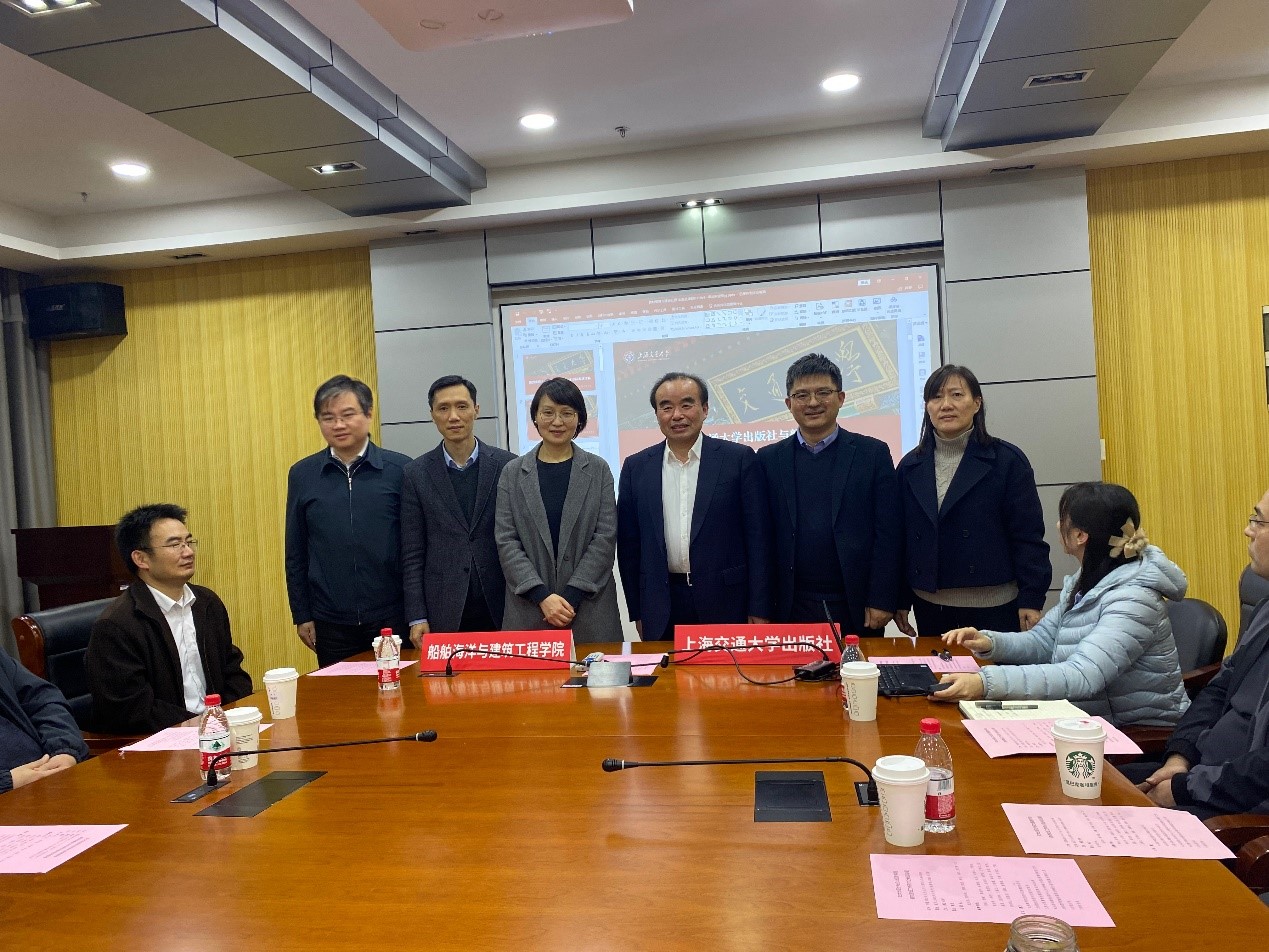 周薇代表学院致词欢迎交大出版社领导一行赴船建学院交流研讨。她表示,高校教材建设是高等教育内涵式发展的重要抓手,近年来国家对于教材选用、教材审查等方面愈加重视,出版社作为教材建设的领导者和主力军,在高校教材导向把关、内容形式、质量管理等方面起到至关重要的作用。船建学院希望与交大出版社建立长期合作机制,持续加强精品教材建设。