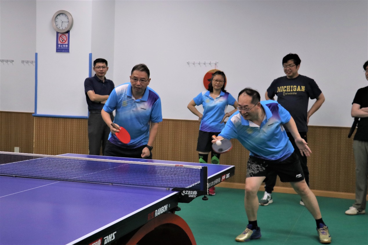 运动点燃热情,促进师生交流。7月5日,交大船建学院-清华飞班联合培养学员师生乒乓球友谊赛在船建学院木兰楼的一楼教工之家举办。船建学院工会组织十余位教师和全体飞班学员开展了精彩激烈的乒乓球对决。学院工会主席刘铸永、副主席袁敏出席活动。