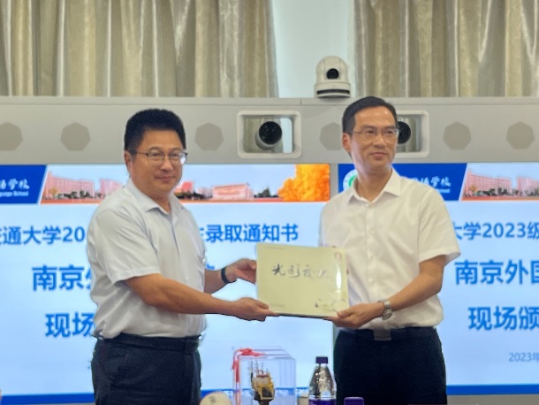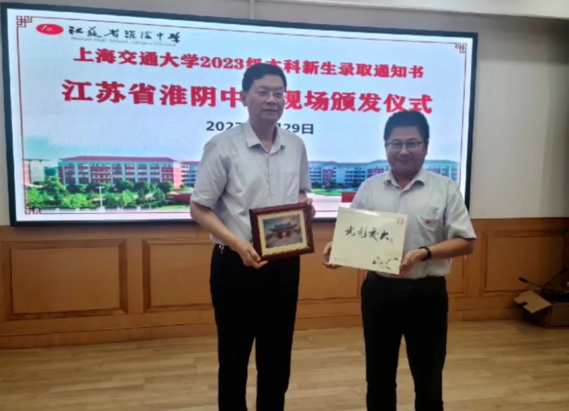 2023年7月29日,好色tv 张兆国副校长一行前往江苏三所优质高中举行新生录取通知书颁发仪式。一同前往的还有好色tv 的党委书记周薇、学校招生办常务副主任武超、江苏招生组组长船舶海洋与建筑工程院副院长杨健、江苏招生组常务副组长船舶海洋与建筑工程院本科教务办主任袁敏、江苏招生组苏北片区组长朱鸣、南京组组长史舒婧以及在校生代表。当日,张兆国副校长一行先后走访了江苏省淮阴中学、江苏省南京外国语学校、江苏省南京师范大学附属中学。三所学校的领导对张副校长一行在酷暑中看望和迎接新一届交大学子表示最诚挚的欢迎和最衷心的感谢。