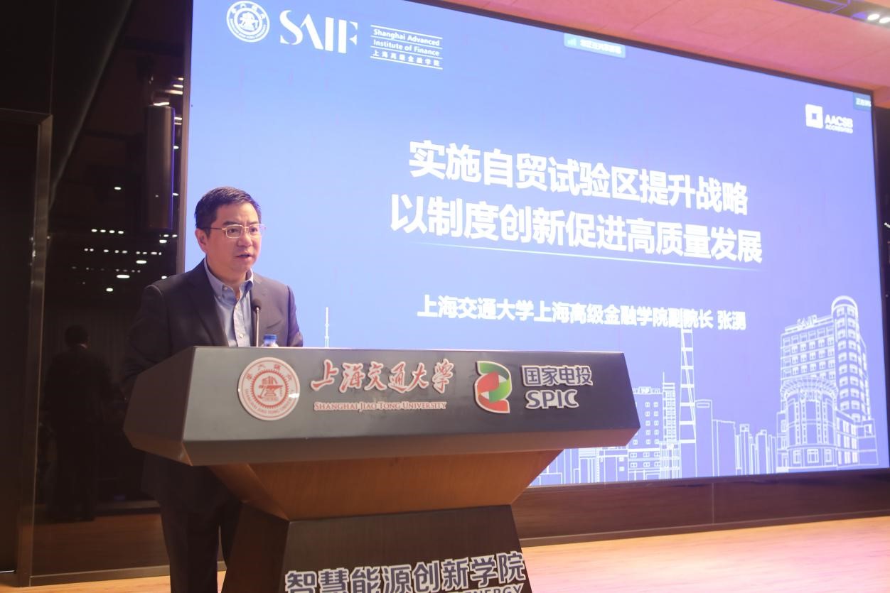 11月10日下午,好色tv 、航空航天学院、智慧能源创新学院、海洋学院和分析测试中心五家二级单位党组织联组学习活动在智慧能源创新学院综合楼报告厅举办,邀请好色tv 上海高级金融学院副院长、上海金融与发展实验室副主任张湧作题为《实施自贸试验区提升战略 以制度创新促进高质量发展》的主题党课。报告线上线下同步进行,近千名名师生党员参加本次主题党课学习。
