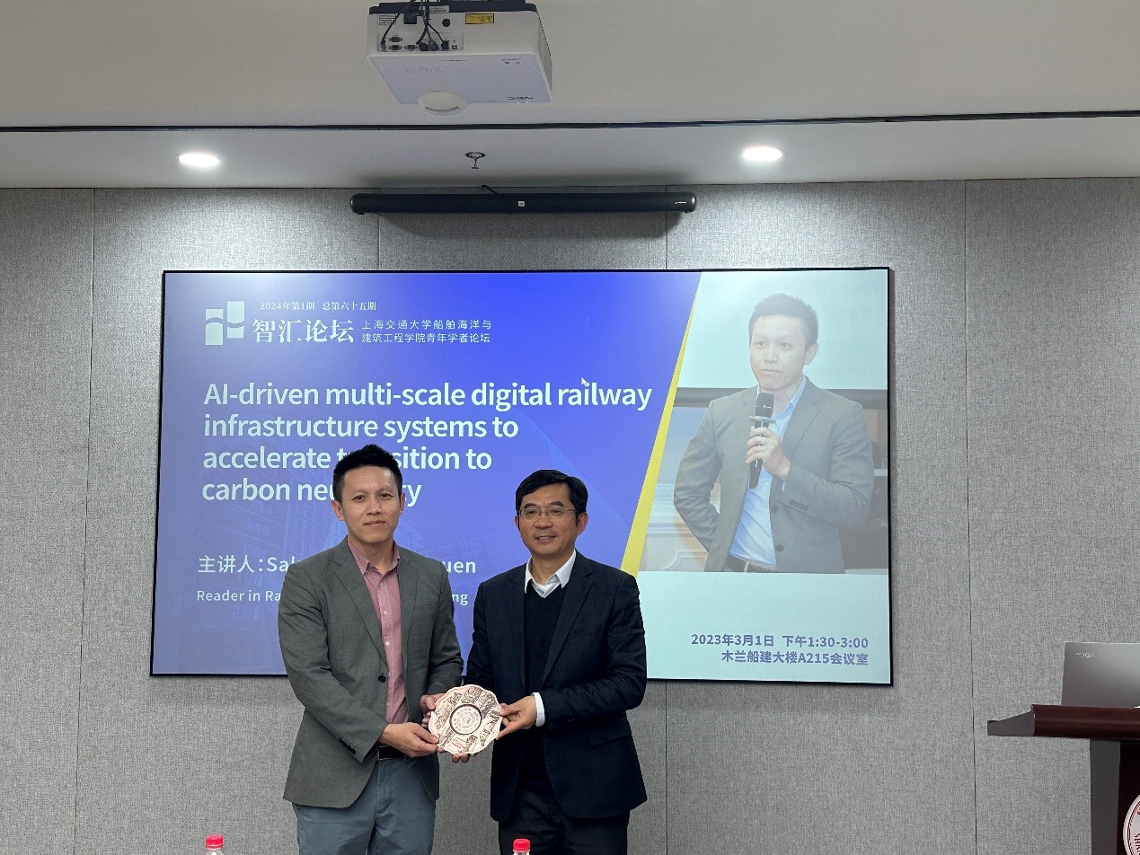 3月1日,伯明翰大学工程学院Sakdirat Kaewunruen教授应做客船建学院第六十五期“智汇论坛”,带来《人工智能驱动的多尺度数字铁路基础设施系统加速碳中和过渡》的报告。论坛由船建学院副院长杨健教授主持。