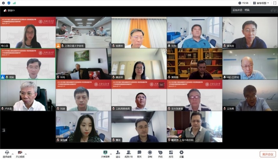 2024年7月17日,中国工程院战略研究与咨询项目“沪舟甬跨海通道建设战略研究(2023-XY-42)”的预结题评审会顺利召开。会议采用线下线上相结合的形式进行,由中国工程院院士、中国交通建设集团有限公司首席科学家林鸣主持。