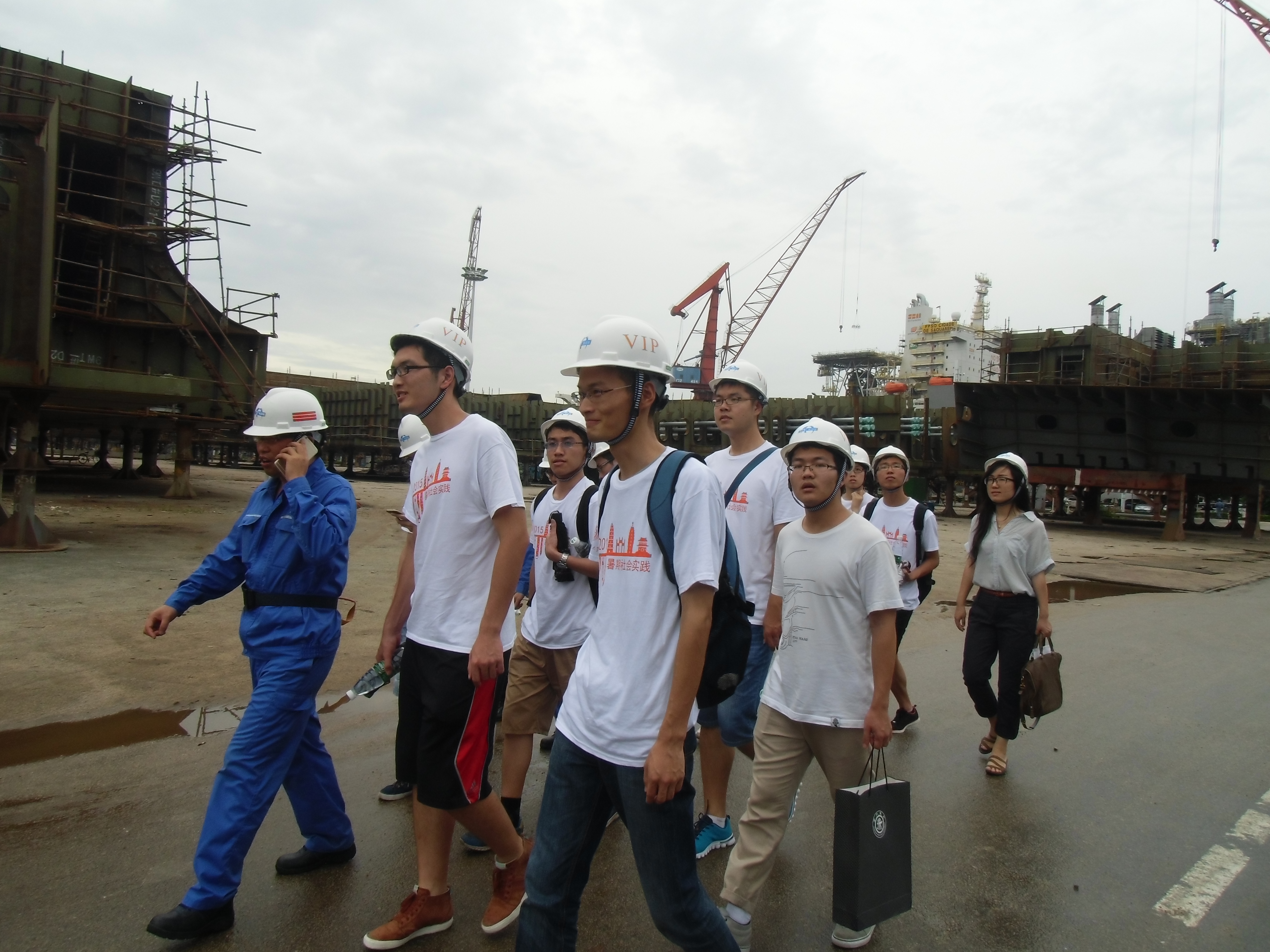下午,在舾装部杨江军书记的带领下,同学们实地参观了龙穴造船基地,大家依据生产流程,依次走访了主要车间和船坞,最后爬上了30.8万吨级的油船,参观其从主机舱到上层建筑驾驶室的各舱室,学子们纷纷表示收获良多。