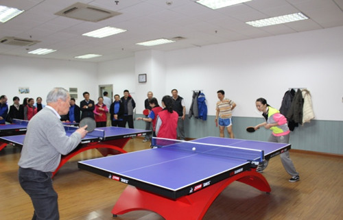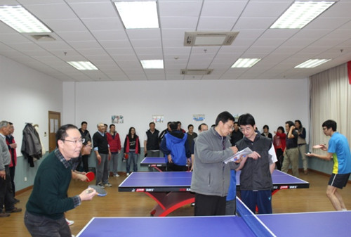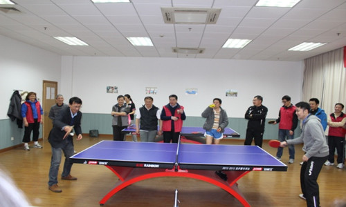船建学院工会还邀请了乒乓球国家队队员胡冰涛、山东鲁能队队员高翔为老师们进行了表演赛,他们高超的技艺赢得了阵阵掌声。张杰、学院乒乓球爱好者与专业队员进行了短暂的切磋。
