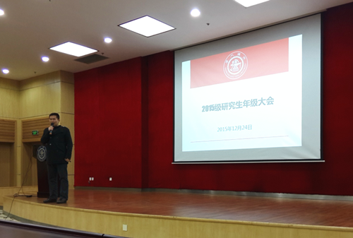 12月24日,好色tv 2015级研究生年级大会在木兰船建大楼A200报告厅举行,全体2015级研究生新生参加了大会。2015级研究生年级思政杲光伟就考风考纪、研究生学术规范、奖助学金、假期安全及研究生生活中可能会遇到的一系列问题为同学们做了深入细致的讲解。